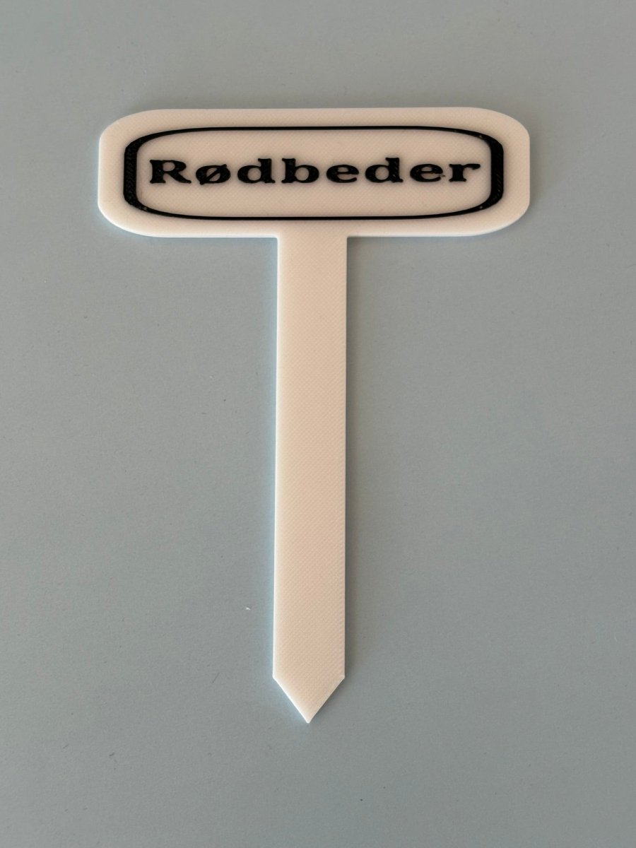 Skiltene er lavet i slidstærkt plast og fremstillet i PETG, og de er 3D-printede for en robust og holdbar løsning, der egner sig godt til udendørs brug. PETG er vejrbestandigt og tåler både fugt og temperaturudsving, så skiltene kan bruges sæson efter sæson.