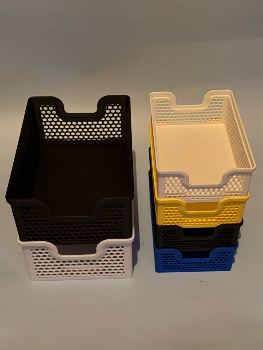 De fungerer perfekt i stuen, på badeværelset, i køkkenet, på kontoret eller i entréen, hvor du ønsker en enkel og stilfuld opbevaringsløsning, der samtidig pynter. Kurvene er lavet i slidstærkt plast og fremstillet i PLA, og de er 3D-printede, hvilket giver en flot finish og et unikt udtryk i hver enkelt kurv.